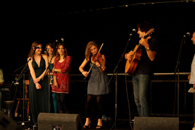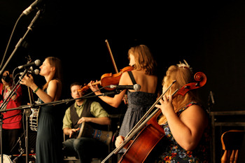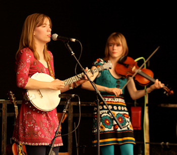 It's bluegrass for me next. I'm off to the Club Tent where I've been reliably informed the Carrivick Sisters are performing. After another calorie burning dash across the site I get there in time to catch their first song. They are playing an extended set as they are one of Acoustic Routes prebookings. I've said that 2011 is a vintage year for English bluegrass and The Carrivick Sisters are one of the reasons for that statement. Judging by the numbers in the Club Tent there's quite a few people that agree with me. Somehow murder and mayhem almost seems acceptable when it's put into a folk song and delivered with such innocence. Devon has two real stars on its hands and word is really spreading rapidly. I've had a tip off about the next act, Harpeth Rising who are joint US-Canadian band of normally classical musicians based in Nashville that all come from classical backgrounds. It sounds intriguing enough to keep me at the Club Tent. The tip turns out to be a good one, Harpeth Rising are a really vibrant and exciting. Any band that writes a song about the demise of a Toyota Corolla has got something going for them. The whole band has got smiles on their face and they communicate their own sense of excitement to the audience and got into one of those delectable feedback loops where crowd and band feed off one another. I'm having a very different Cambridge to usual. I've spent more time away from Main stage than I have in a good few years and in all honesty, I'm loving it. |