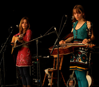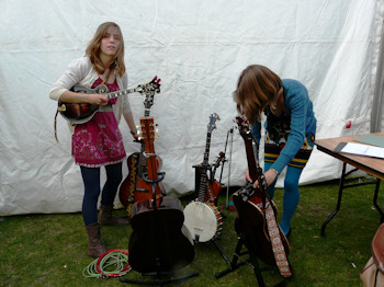 During Saturday afternoon there was a bee-line to follow in order to catch Devon's very own Carrivick Sisters as they performed songs from their brand new album From the Fields. Alternating between guitar and mandolin, fiddle and dobro, Charlotte and Laura brought a taste of their own particular brand of bluegrass to a packed Club Tent audience as part of the Acoustic Routes open mic session. The Carrivick Sisters seem just as happy to play late night impromptu sessions at various locations around the festival site as they are taking to the main stages. This is testament to their commitment to their music, which on this new album has been overseen by producer Joe Rusby, who was also at the festival. |